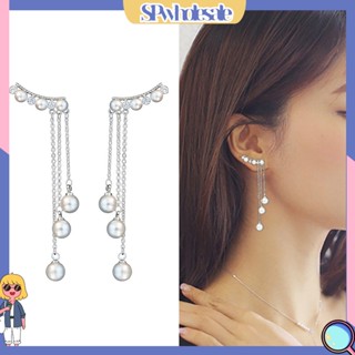 {SPwholesale} Khuyên tai dài đính đá và ngọc trai nhân tạo thời trang dành cho nữ