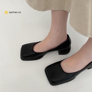 Giày Da Cao Gót Mũi Vuông Phong Cách Anh Quốc Thời Trang Mùa Thu 2022