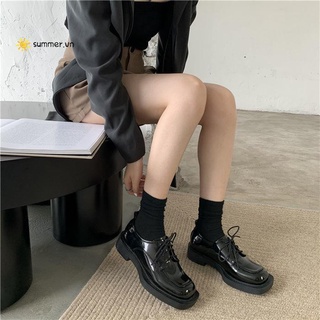 Giày Da Mũi Vuông Cột Dây Phong Cách Anh Quốc Thời Trang 2022 Cho Nữ