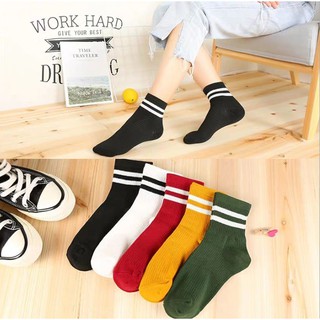 SET 5 TẤT NỮ PHONG CÁCH HÀN QUỐC CAO CỔ VIỀN KẺ ĐEN TRẮNG HÀN QUỐC B06