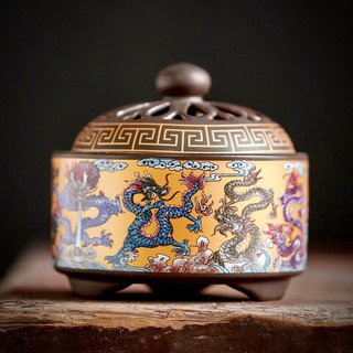 Lư gốm xông trầm - tặng chân đế cắm hương que, hương vòng