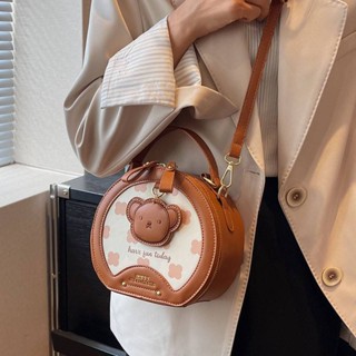 Túi Đeo Chéo Hình Tròn Nhỏ In Họa Tiết Gấu Hoạt Hình Phong Cách Cổ Điển Thời Trang Mùa Hè 2023 Cho Nữ