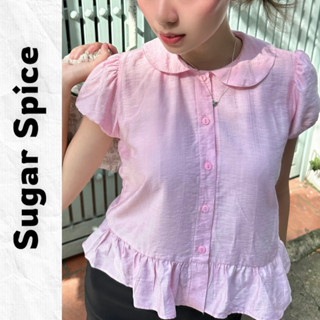 Áo BabyDoll Tay Phồng Gài Cúc Phối Bèo SUGAR SPICE - Sophia Babydoll Top