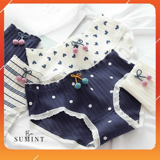 Quần lót nữ kháng khuẩn cạp thấp nâng mông chất liệu ren cao cấp họa tiết chấm bi Q2857