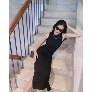 Đầm body sát nách 2 màu đen, cam vải thun gân tôn dáng khoe body sexy Sun Fashion