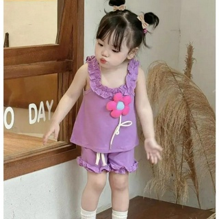Đồ bộ bé gái - Bộ 2 dây bé gái đính hoa viền sóng size từ 7 đến 18 kg - SUN KID'S