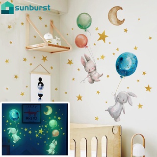 Miếng Dán Tường Dạ Quang Bằng PVC In Hình Thỏ Hoạt Hình Tháo Được Trang Trí Nhà Cửa