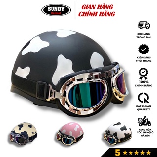 Mũ bảo hiểm nửa đầu SUNDY Helmets, có kính UV, phi công, tem Bò Sữa cute, an toàn, chất lượng, Freesize (55-59cm)