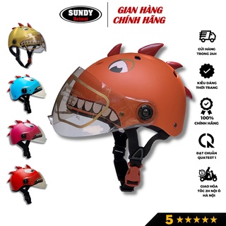 Mũ bảo hiểm cho bé SUNDY có kính, siêu nhẹ, họa tiết khủng long cute, đáng yêu cho trẻ em từ 3-9 tuổi