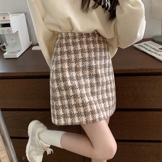 Chân Váy Len Chữ A Lưng Cao Họa Tiết Kẻ Sọc Thời Trang Thu Đông Cho Nữ