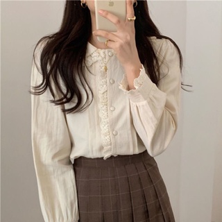 Áo Sơ Mi Chiffon Tay Dài Cổ Vuông Phối Ren Thời Trang Mùa Thu Phong Cách Vintage Dành Cho Nữ