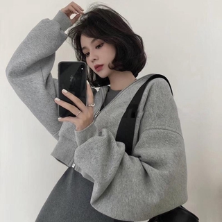 Áo Khoác Hoodie Dài Tay Phối Khóa Kéo Thời Trang Mùa Đông Cho Nữ