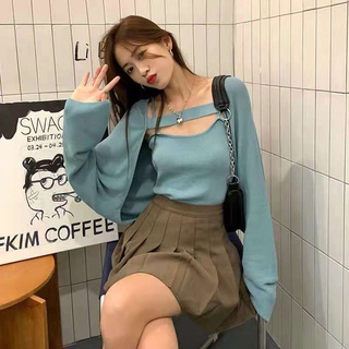 Set Áo Hai Dây Dệt Kim + Áo Khoác Cardigan Thời Trang Mùa Thu Phong Cách Hàn Quốc Cho Nữ