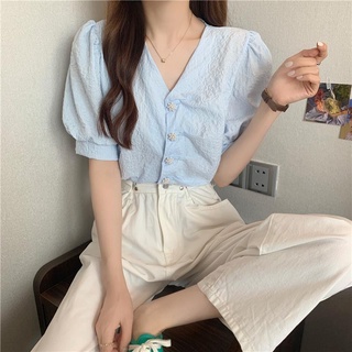 Áo Kiểu Tay Phồng Cổ Chữ V Phong Cách Vintage Pháp Hợp Mùa Hè Cho Nữ