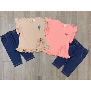Bộ Milk Mile áo váy bèo kèm quần giả jean