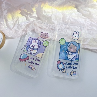 Ốp điện thoại mềm trong suốt hình gấu cho Realme C21 C21Y 8 Pro 5 5i 6i C3 C15 V13 V15 OPPO A9 A5 A53 2020 A3S A15 A16 A54 A74 A94 A5S A12 C11 C2 C1 C11