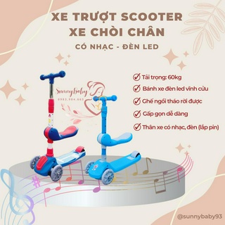 Xe Trượt Scooter Đa Năng - Xe Chòi Chân Có Ghế Ngồi Cho Bé 2-8 tuổi - Hàng Cao Cấp Có Nhạc Đèn Phát Sáng