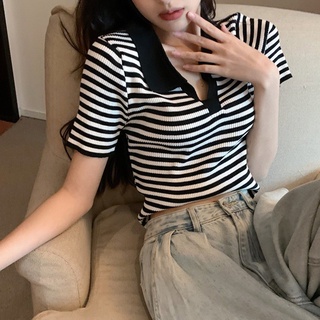 Áo thun polo tay ngắn họa tiết kẻ sọc thời trang dành cho nữ