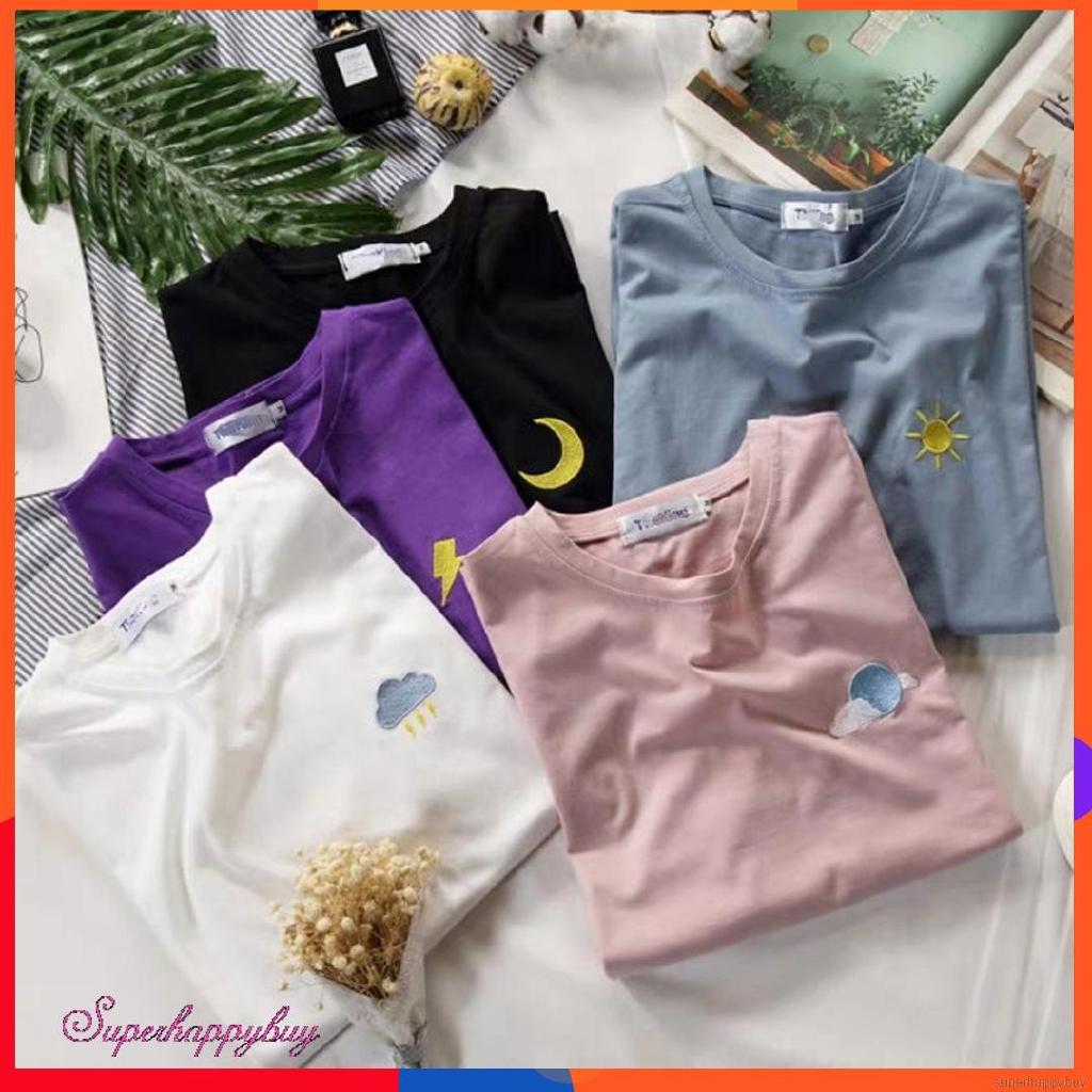 Áo thun tay ngắn thêu hình xinh xắn phong cách Hàn Quốc thời trang