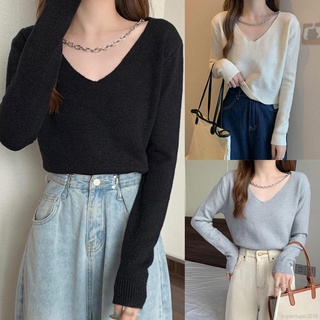 Áo Croptop Tay Dài Cổ Chữ V Phong Cách Hàn Quốc