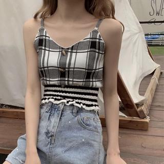 Áo Hai Dây Nữ Cổ Chữ V Họa Tiết Caro Gợi Cảm