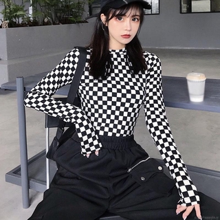 Áo thun tay dài in caro thời trang cá tính cho nữ