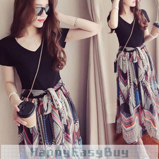Đầm chiffon in họa tiết phong cách Hàn Quốc thanh lịch