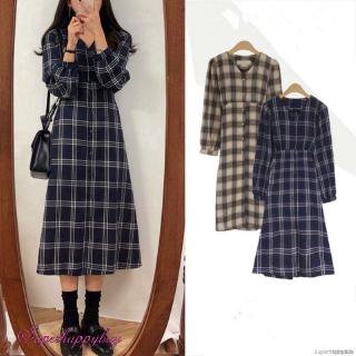 Đầm nữ tay dài họa tiết caro phong cách retro
