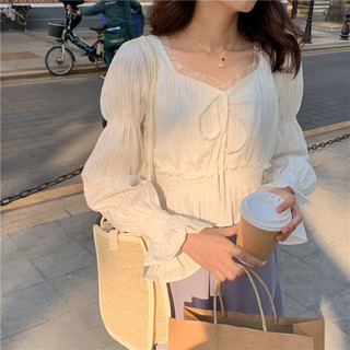 Áo Croptop Tay Phồng Phối Ren Quyến Rũ Dành Cho Nữ