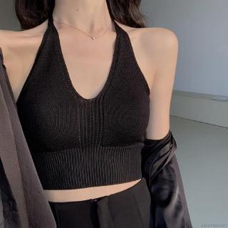 Women Sexy Tank Tops Hanging Halter Short Korean Fashion Solid Color Camisole Tops