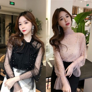 Áo kiểu tay dài thiết kế cổ chữ V quyến rũ