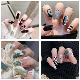 Bộ 24 Móng Tay Giả Họa Tiết Kẻ Ô Trắng Đen Thời Trang Cho Nữ