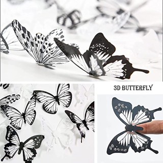 Set 18 Miếng Dán Tường Trang Trí Hình Bướm 3D Màu Trắng Đen Nghệ Thuật Dành Cho Phòng Khách / Phòng Ngủ / Tiệc Cưới