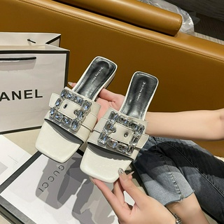 Dép Sandal Đế Thấp Mũi Vuông Đính Đá Thời Trang Cho Nữ