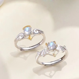 Nhẫn Cặp Hình Thiên Thần Đính Đá Mặt Trăng Có Thể Điều Chỉnh Phong Cách Cổ Điển Cho Cặp Đôi