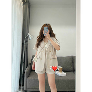 Set bộ vest-blazer dáng suông áo cộc tay và quần short dành cho mùa hè siêu hot