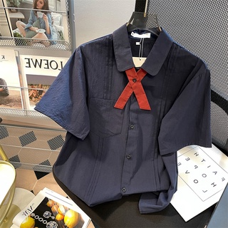 Áo Sơ Mi Tay Ngắn Dáng Rộng Cổ Búp Bê Phối Cà Vạt Phong Cách Cổ Điển Thời Trang Mùa Hè Cho Nữ