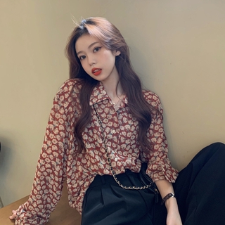 Áo Sơ Mi Dài Tay Dáng Rộng In Hoa Kiểu Retro Thời Trang Mùa Thu Cho Nữ