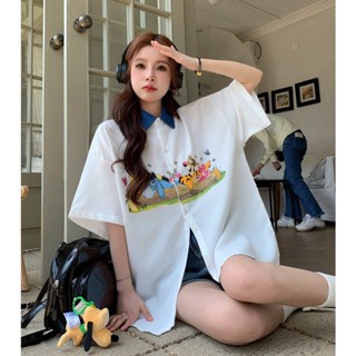 Áo Sơ Mi Tay Ngắn Dáng Rộng In Họa Tiết Hoa Thời Trang Mùa Hè Xinh Xắn Cho Nữ