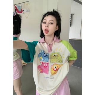 Áo polo Ngắn Tay Dáng Rộng In Họa Tiết Tương Phản Thời Trang Mùa Hè Mới
