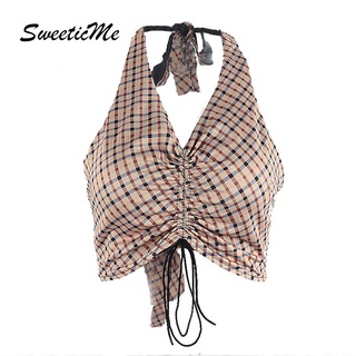 Áo Hai Dây Họa Tiết Sọc Caro Thiết Kế Mới Quyến Rũ Thời Trang Cho Nữ