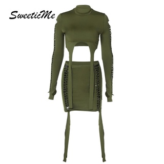 Bộ Áo Tay Dài Cổ Tròn Phối Chân Váy Ngắn Ôm Dáng Thời Trang Quyến Rũ Cho Nữ