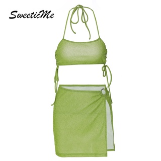 Bộ Áo Ngắn Tay Cổ Chữ V Màu Trơn + Chân Váy Xẻ Tà Thời Trang 2022 Cho Nữ