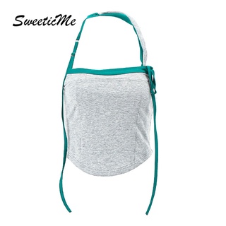 Áo Cổ Yếm Hở Lưng Phối Nút Kim Loại Thời Trang Đường Phố Sweeticme