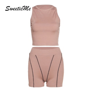 Set Áo Sát Nách Màu Trơn Và Quần Short Lưng Cao Form Ôm SweeticMe 2022