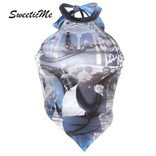 Áo Tank Top Hai Dây Hở Lưng Dáng Ôm In Họa Tiết Thời Trang 2023 Quyến Rũ Cho Nữ
