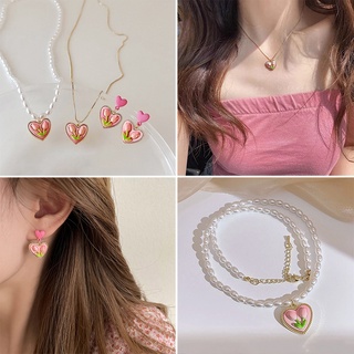 Vòng cổ Mặt Hình Hoa Tulip Đính Ngọc Trai Thời Trang Cho Nữ