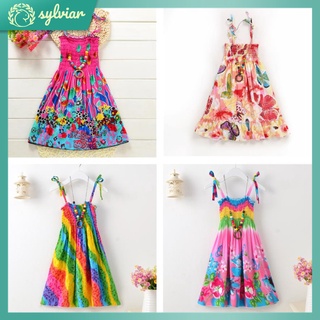 [sylviar] Đầm Công Chúa Đi Biển Xếp Ly Hai Dây + Vòng Cổ Nhiều Màu Sắc Bằng Cotton Cho Bé Gái