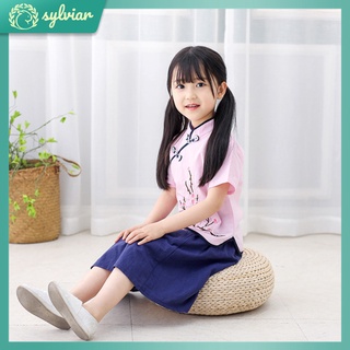 Bộ Đồ Hán Phục 2 Món Áo Tay Ngắn Phối Chân Váy Kiểu Dân Tộc Dễ Thương Cho Bé Gái