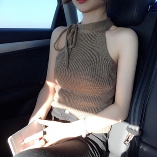Áo Hai Dây Dệt Kim Màu Sắc Đơn Giản Cho Nữ